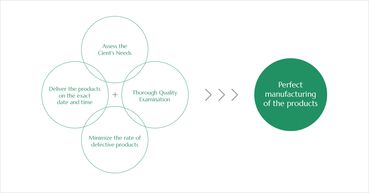 Through the rules about the raw material designation, contrasting the products with a standard product sample, and experiments we check the qualities and ensure the safety of the products.